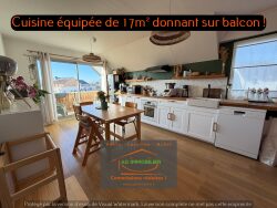 Il comprend : Une entrée, un salon/séjour de 23m² très lumineux donnant sur un balcon exposé sud, une cuisine équipée avec espace repas de 17m² avec accès à un second balcon plein sud, une chambre avec placard, une salle d'eau et un wc indépendant. A l'étage un palier avec placard dessert une seconde chambre.