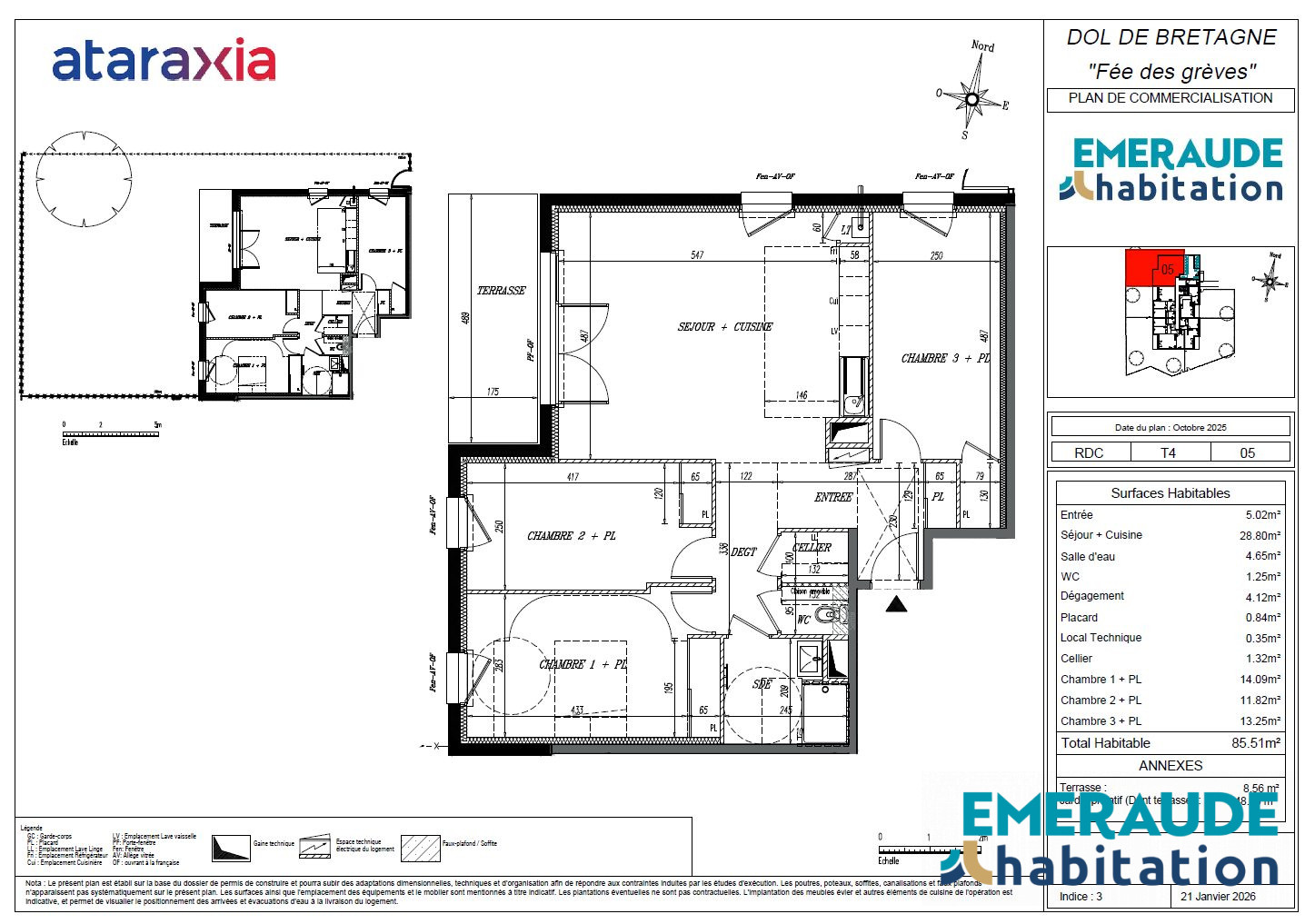 Appartement Vezin Le Coquet T4 de 70 m2 + 2 terrasses + garage