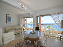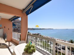 Situé au 7e et dernier étage d'une résidence en front de mer, appartement 2 pièces meublé à louer à l'année. Séjour salle à manger donnant sur terrasse vue mer panoramique, cuisine ouverte (plaque gaz, four, frigo congél, lave vaisselle, lave linge, micro-ondes), salle d'eau, WC séparé, 1 chambre avec placard. Parking collectif sécurisé dans l'enceinte de la résidence.
