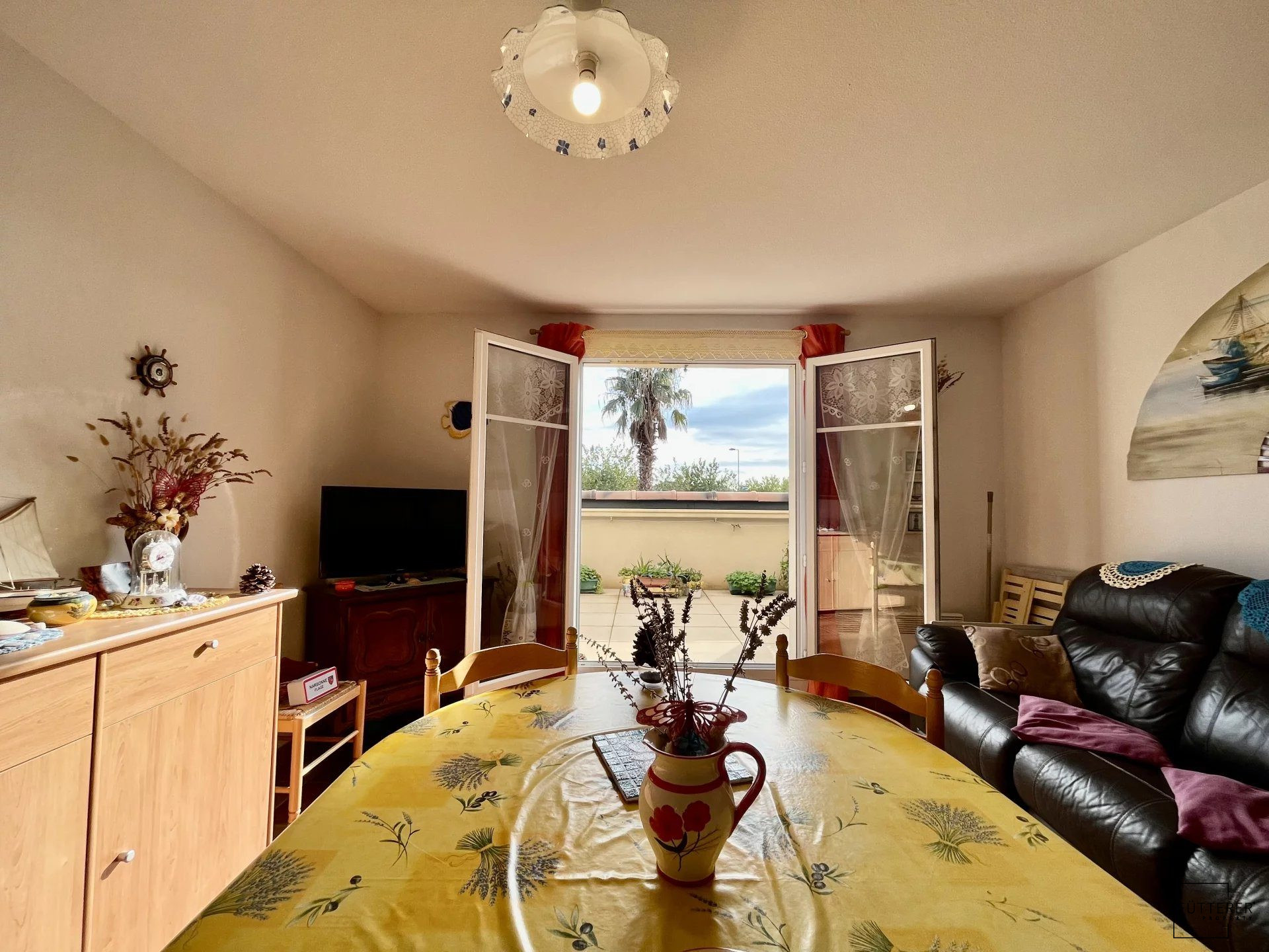 Fütterer Property vous présente à Narbonne-Plage : Spacieux appartement 2 pièces de près de 56m2 avec la véranda, cellier et place de parking privative. Situé au rez-de-chaussée d'une petite résidence sécurisée (de 2008), cet appartement se compose de la manière suivante : Une entrée, un séjour avec une cuisine équipée/meublée donnant sur une loggia bénéficiant d'une vue sur la pinède et 'La Clape', une chambre avec placard et une salle de douche avec WC. Belles prestations : environnement calme, double vitrage, Climatisation, volets roulants électrique, vue dégagées, un cellier, une place de parking dans la résidence.