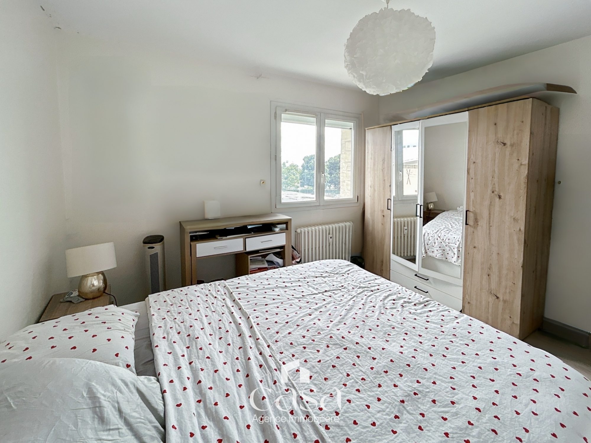 Il se compose comme il suit : Une d'entrée donnant sur un couloir déservant une salle d'eau, une chambre et le séjour salon, le séjour donne sur le coin cuisine (aménagée) sur le balcon et la deuxième chambre.