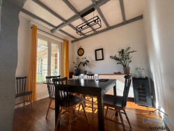Offrant une entrée avec placard, un séjour/salle très lumineux avec parquet ancien, poutre apparente, une cuisine aménagée et équipée, une salle de bain, un couloir desservant 3 chambres, dont une grande avec placard.