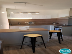 Sa surface de 61 m2 se compose d'une entrée avec placard, d'un séjour de 30 m2 environ, avec de belles ouvertures donnant sur une terrasse, et ouvert sur une cuisine équipée avec balcon. Puis dans le coin nuit vous trouverez une grande salle de bain (baignoire, double vasque et sèche serviette), 2 chambres (12 m2 et 11 m2 environ) avec chacune un placard et un wc séparé. Le tout sera loué avec 2 emplacements de parking privatifs aériens.