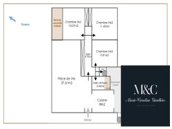 Pièce de vie d'environ 38m2 // petite loggia fermée // cuisine spacieuse avec buanderie attenante // 3 chambres // salle de bains avec douche et baignoire // wc.