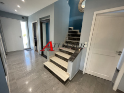 Belle propriété idéalement située entre les plages et le village d'Argeles sur mer. Quartier calme en impasse, découvrez cette confortable villa contemporaine. Totalisant 153m2 habitable sur une parcelle de 620m2, elle est de construction traditionnelle. Dans un état impeccable, elle dispose d'une grande suite parentale en rez de jardin, un volumineux salon, une cuisine aménagée et équipée de très bonne facture. Buanderie et Garage carrelé/isolé A l'étage, 2 chambres avec placard avec vue sur le massif montagneux du solarium. Salle d'eau avec fenêtre. Maison dans un état impeccable, aucuns travaux à prévoir. Volets roulants centralisés et logement entièrement climatisé. Eclairage à LED et aspirateur centralisé.