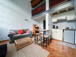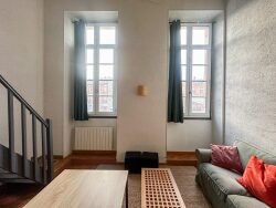 Idéalement situé au coeur du centre ville Toulousain, au pied des commerces et de la fac du Capitol, appartement T1 bis en duplex, Meublé. Ile se compose d'une entrée avec placard de rangements, d'une salle d'eau avec wc, d'un séjour lumineux avec belle hauteur sous plafond et d'une cuisine ouverte. A l'étage, un coin nuit avec un espace dressing. Chauffage électrique individuel, double vitrage. Disponible immédiatement.