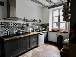 Elle se compose au RDC de : belle entrée, salon, cuisine A/E avec séjour, arrière cuisine, buanderie, SDE, WC. A l'étage : 4 belles chambres, SDB, WC et grenier à finir d'aménager. Annexes : grande dépendance servant de garage et atelier, une belle terrasse pour passer de bons moments, 2 cours intérieures.
