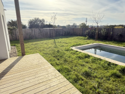 ARTIGUES-PRES-BORDEAUX - Coup de coeur pour cette spacieuse maison T4bis neuve de 110m2 située dans un cadre idyllique à Artigues-près-Bordeaux et à deux pas des commodités du centre-bourg. La maison se répartie comme suit: une belle entrée, une grande pièce de vie très lumineuse ouverte sur un jardin sans aucun vis-à-vis, 3 chambres dont une chambre en rez-de-chaussée, un coin bureau, salle de bains, salle d'eau, cellier...Un beau jardin bien exposé avec piscine, un garage, 2 places de stationnements complètent le tout!! Frais de notaire réduits et offres promotionnelles à saisir en nous contactant au 06.87.42.68.97 - Fanny Dupain Immobilier.