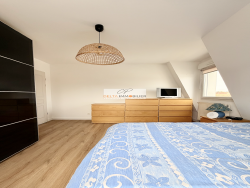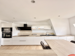 À Lutterbach, dans un environnement calme et recherché, découvrez ce superbe attique de 111 m2 situé au dernier étage d'une résidence bien entretenue construite en 2005 avec ascenseur. Ce bien rare séduit immédiatement par sa luminosité et ses volumes généreux, avec notamment un dressing d'entrée pratique dès l'arrivée, ainsi qu'un grand salon-séjour idéal pour partager des moments conviviaux. La terrasse de 16,8 m2 exposée plein sud constitue un véritable atout, offrant un espace extérieur agréable pour profiter du soleil tout au long de la journée. L'appartement dispose de trois chambres confortables, dont une avec un grand dressing sur mesure, ainsi qu'une salle de bains équipée. Il bénéficie également d'un espace pouvant être aménagé en buanderie, apportant un vrai plus au quotidien. La cuisine SCHMIDT, moderne et entièrement équipée, complète parfaitement cet espace de vie fonctionnel et chaleureux. Un garage fermé avec porte automatique est inclus, avec la possibilité d'acquérir un second garage également motorisé, un avantage rare sur le secteur. Situé à proximité des commodités, des axes routiers et des transports, ce bien combine parfaitement confort, praticité et qualité de vie. Ce bien s'adresse aux personnes recherchant un appartement lumineux, en dernier étage, avec terrasse, ascenseur, trois chambres, dressing, cuisine équipée, espace buanderie et garage, dans une résidence récente à Lutterbach. Bon DPE.