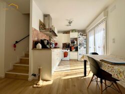 Alliant le charme de l'ancien avec ses poutres apparentes et le confort moderne, ce triplex s'apparente à une véritable petite maison, prête à vous accueillir.