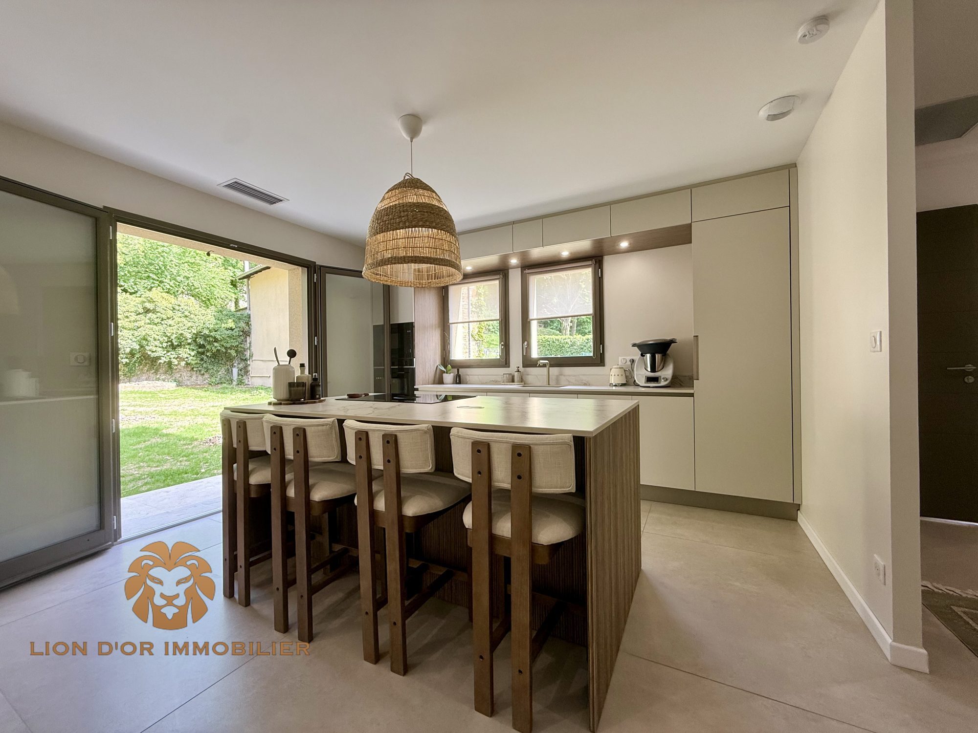 Villa neuve édifiée en 2022, idéale famille nombreuse, D'une surface de plus de 245m2 habitables répartis sur deux niveaux. Composée d'une grande cuisine indépendante de 32m2 avec espace repas, séjour d'environ 50m2, bibliothèque, chaufferie, buanderie, 2 WC, cellier. A l'étage 6 chambres, dressing, bureau, 2 SDO et 1 SDB, 2 WC. Sur une parcelle de terrain de 466m2. Matériaux et finitions de qualité: chauffage pompe à chaleur, menuiseries PVC baies vitrées aluminium, volets roulants électriques, tuiles terre cuite, bandeaux PVC, enduit façade écrasé.