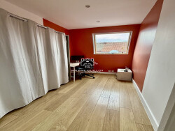 La maison comprend également en rez-de-chaussee une très grande salle de bains ( avec un espace douche et une grande baignoire ) ainsi qu'un espace buanderie. Au premier étage, le palier dessert deux Chambres ainsi qu'une troisième pièce pour un espace Bureau/ou une salle de jeux. Au second étage, le grenier a été aménagé sous les toits, et propose une pièce de travail supplémentaire ou un espace de rangement complémentaire.