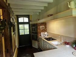 Au rez-de-chaussée : d'une entrée ouverte sur cuisine aménagée et équipée et salle à manger, d'un côté séjour (50m2) avec cheminée insert (conduit tubé) et terrasse en bout vous offrant une magnifique vue sur le bief, d'autre côté WC avec lave-main, salle de bains, bureau en bout, et une chambre ; en appentis derrière au Nord terrasse pavée sous véranda, et buanderie.