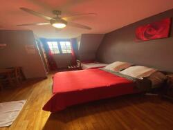 Il y'a également un logement privée à mi étage de 120 m² ( 2 chambres, bureau, cuisine, salon poêle à granulé, wc salle d'eau ).