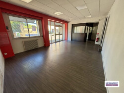 Local professionnel à louer Open space de 96 m² avec grand linéaire vitré Bureau fermé de 10 m² Espace pause / sanitaires : 8 m² Plusieurs parkings privatifs - Local fonctionnel, lumineux et facilement accessible avec belle visibilité. Idéal pour une activité nécessitant un espace ouvert modulable avec zone de travail dédiée. Disponible immédiatement. Loyer mensuel : 1600 euros HT - Honoraires d'agence en sus charge preneur 4608 euros HT.