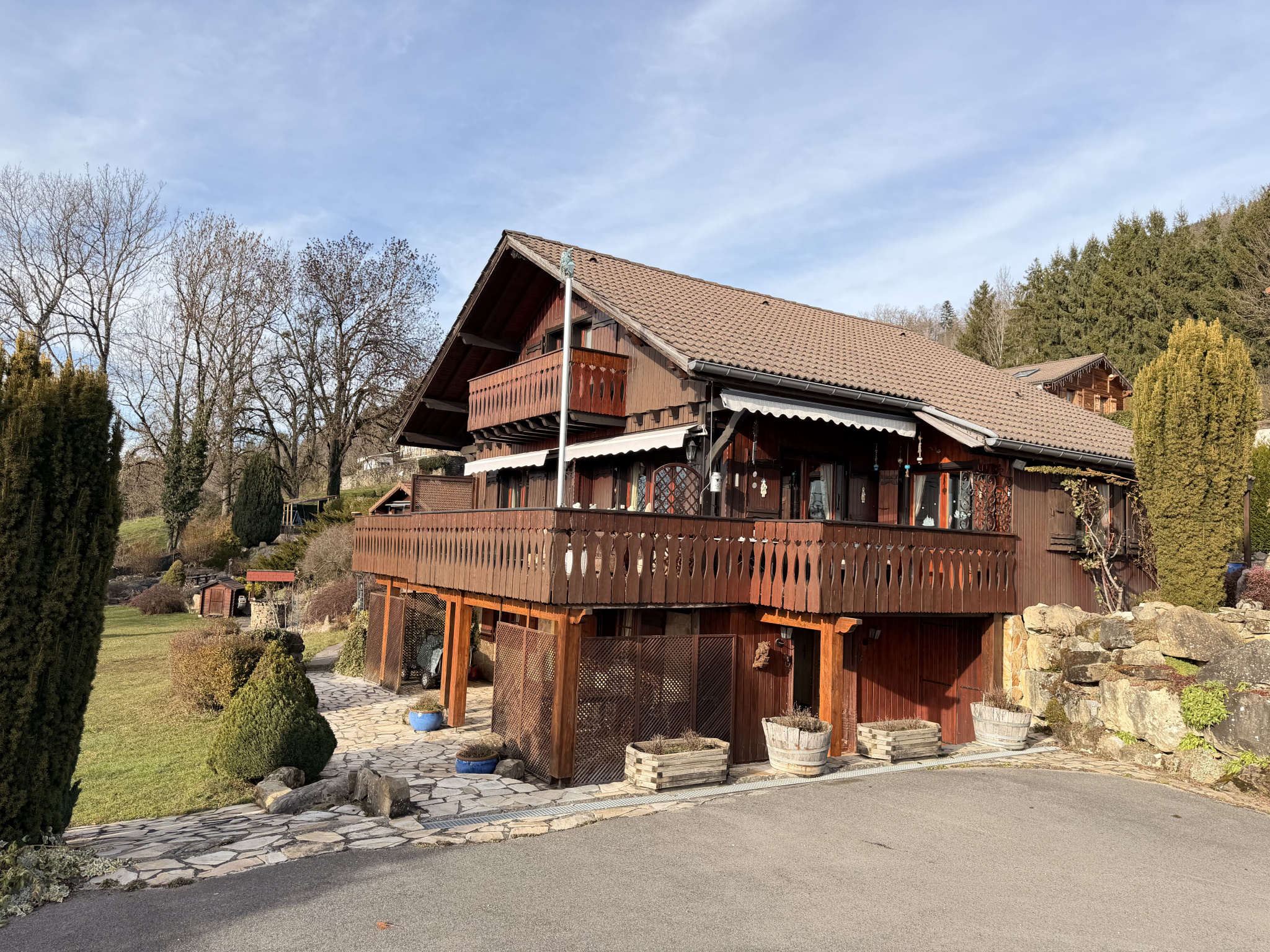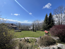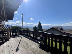Situé dans un secteur calme et préservé sur les hauteurs de Fillinges, ce chalet bénéficie d'une vue spectaculaire sur le massif des Voirons, les montagnes alpines et les vallées verdoyantes. Vous serez charmés par son authenticité assumée et ses extérieurs soignés. Au 1er niveau, la visite commence par une entrée indépendante de 8,04 m2 qui offre un espace d'accueil très fonctionnel. On accède ensuite à l'espace de vie composé d'une cuisine équipée semi-ouverte de 15,7 m2 et d'un séjour/salon/salle-à-manger de 45,23 m2 exposé Sud-Ouest. Une porte-fenêtre ouvre sur une grande terrasse de 32 m2 exposée Sud. Une salle d'eau avec WC complète ce niveau. A l'étage, l'espace nuit se compose d'une 1 ère chambre de 22,36 m2 bénéficiant d'un balcon de 6,58 m2, avec vue imprenable sur les montagnes, et d'une seconde chambre de 10,59 m2, ainsi que d'une salle d'eau avec douche, WC, sèche-serviettes et fenêtre de toit. En rez-de-jardin, le sous-sol a été entièrement aménagé en studio indépendant de 49,98 m2 comprenant une cuisine séparée, une salle d'eau avec WC, et un double séjour avec coin nuit ouvert sur la terrasse abritée et le jardin. Ce studio de plain-pied dispose d'un double accès, depuis l'extérieur et depuis un escalier intérieur au chalet : idéal pour accueillir famille et amis ou pour de la location saisonnière. Les petits ' plus ' indispensables : nombreux rangements, chauffage par poêle à bois avec des radiateurs électriques en appoint, parquet massif, possibilité de re-créer deux chambres supplémentaires au 1er et au 2e niveau, tout-à-l'égout, parcelle constructible (division possible)... Les extérieurs sont également bien présents avec un mazot savoyard électrifié de 16 m2, un puits et un récupérateur d'eau de pluie, un bassin à poissons, un espace de stationnement goudronné pour 4 à 5 véhicules, un appentis... Taxe foncière : 928EUR. - Annonce rédigée et publiée par un Agent Mandataire -