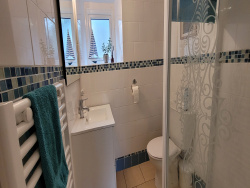 À l'étage : une chambre, salle de bains avec WC. Parfait pour recevoir famille, amis ou pour une activité locative.