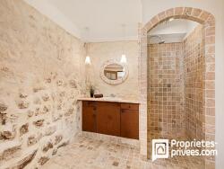 .Le rez-de-chaussée dévoile une vaste pièce de vie pleine de caractère, mariant pierres apparentes et poutres en bois. Elle intègre une cuisine aménagée au style affirmé et peut facilement devenir une salle à manger, un bureau, un atelier ou même un espace professionnel.