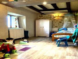A vendre dans la campagne Changéenne : Charmante grande maison indépendante de 200 m² habitables sur un terrain privé alliant prés, bois, jardin et dépendances. Cette fermette rénovée saura vous séduire grâce à son séjour dépassant 60 m² avec mezzanine cocooning, ses 2 grandes chambres de plain pied, sa salle de bains, sa salle d'eau, son WC indépendant, sa pièce de jeu et deux cheminées changées + tubées tout récemment. A l'étage, encore deux belles chambres. Pour compléter l'offre : Portail électrique, carport, dépendance pouvant servir à créer un nouveau logement, pompe à chaleur air/eau pour le chauffage et l'eau chaude. Actuellement, le pré est loué 400 euros/mois pour accueillir 4 chevaux mais possibilité de le libérer pour la vente.