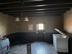 Auv 1171 : Projet de rénovation : maison, grange, hangar, dépendances, 1400m2 Ensemble situé dans un environnement calme, réparti des deux côtés d'un petit chemin. Comprend une grande grange avec une surface intérieure de 16m x 8m, hauteur du plancher à la faîtière de 7m, et une série d'écuries en dessous avec des entrées côté vue panoramique. Toiture couverte en ardoises contenant de l'amiante. De plus, une grande charpente ouverte en bois de 130m2 avec poteaux métalliques et toiture en tôle, un petit bâtiment en pierre de 60m2. À l'arrière de la maison, légèrement en contrebas, se trouve un autre ancien bâtiment de 60m2. La maison elle-même a une superficie extérieure de 65m2, avec des dimensions intérieures de 9,50m x 6m. Sous la maison, des caves accessibles par une entrée latérale. Au rez-de-chaussée, une entrée (4,5m2), une salle à manger (14,5m2), une cuisine (7m2) et un salon (25m2, hauteur sous plafond 2,50m). À l'étage, un couloir (10m2), 2 chambres (17m2, 12m2, hauteur 2,40m), et 2 petites pièces de 8m2 et 7m2, séparées par des cloisons modulables. La structure de la maison est en bon état, le toit est moyen, et l'intérieur est entièrement à rénover. Un grand projet avec de nombreux bâtiments, sur un terrain de 1400m2 offrant une très belle vue à l'arrière, au bout d'un petit hameau.