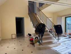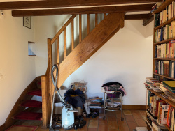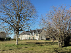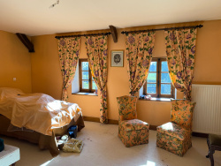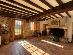 Auv 1178: Magnifique longère rénovée, emplacement paisible, 7780m2 À l'origine, cette propriété était une maison avec une grange, dont la grange a été entièrement transformée en espace habitable. La superficie intérieure totale du bâtiment est de près de 200m2 et il y a deux étages. Autant dire qu'il y a beaucoup d'espace ! Le terrain comprend un beau jardin, une grande terrasse, une partie en prairie et un puits. Dans la maison, on trouve une cuisine relativement petite (10m2), donnant sur la partie d'origine de la maison, qui est divisée en trois espaces ouverts totalisant 82m2 : coin repas, salon et bibliothèque, ainsi qu'un grand espace de rangement fini en bois de châtaignier. Des éléments authentiques sont toujours présents, comme une grande cheminée, un plafond avec poutres apparentes, etc. Chaque espace dispose de sa propre porte vitrée en chêne (simple vitrage) donnant sur le jardin. Dans la partie gauche, à l'étage, se trouve un grand palier mezzanine qui pourrait devenir une véritable chambre en rajoutant quelques cloisons, ainsi que deux très grandes chambres, un WC séparé avec lavabo et une salle de bains un peu datée, équipée d'une baignoire, douche et lavabo. Sur la droite, l'ancienne grange a été rénovée plus récemment et dans un style plus moderne, avec beaucoup de marbre et de grandes fenêtres en double vitrage. On y trouve un immense hall (33m2) avec un escalier central, suivi d'une chambre, d'un WC séparé avec lavabo, et d'un grand garage (24m2) abritant l'installation du chauffage central au fioul et des pompes à chaleur. À l'étage, il y a une mezzanine spacieuse, une très grande chambre, un WC séparé avec lavabo, et une salle d'eau en marbre avec lavabo et douche à l'italienne. Une nouvelle installation pour l'évacuation des eaux usées sera à créer. Cette maison est la dernière d'un hameau calme et offre de nombreuses possibilités de projets.