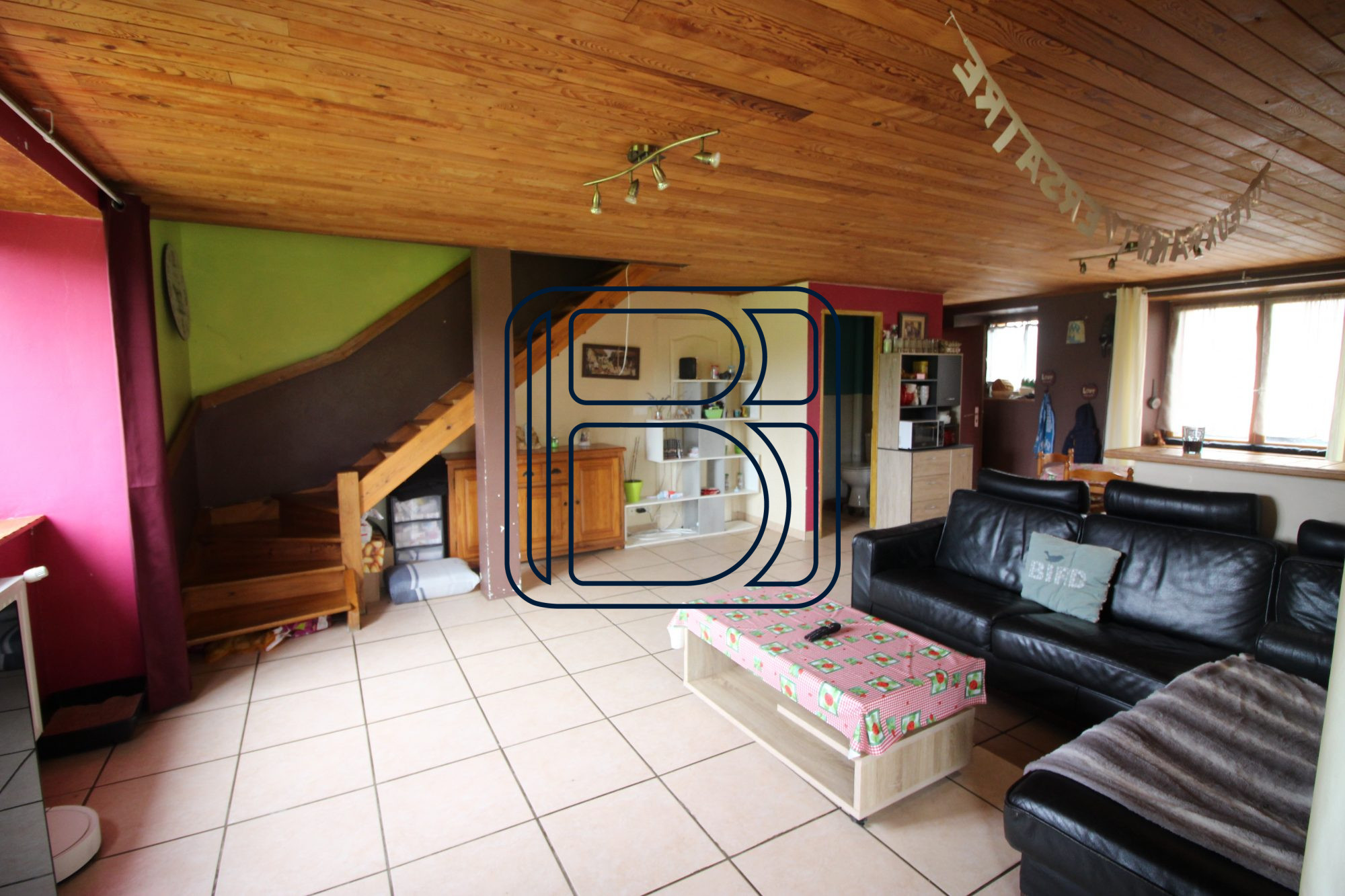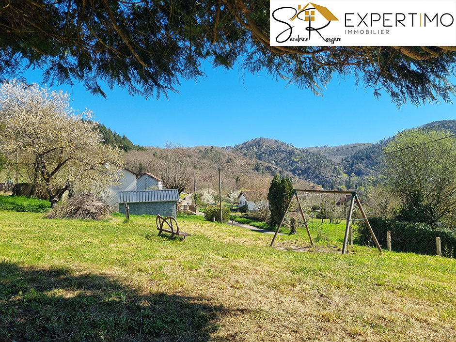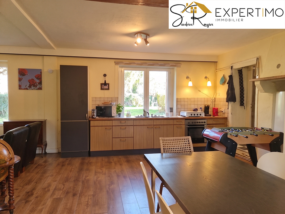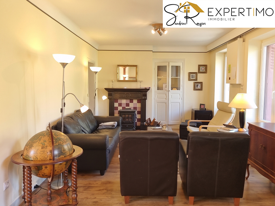 Auv 1196 : 3 maisons mitoyennes, divers bâtiments annexes, 3180m2 Cet ensemble offre de très nombreuses possibilités pour divers projets. La maison d'habitation est un peu datée mais on peut y vivre immédiatement tout en la modernisant et en développant un projet. Les ruelles qui divisent l'ensemble en trois grandes parties sont locales et donc presque dépourvues de circulation. La vue à l'ouest, à l'arrière où se trouvent également les jardins, est absolument magnifique : 180o sur la belle région des Combrailles, sans aucun vis-à-vis. La première partie comprend la maison principale qui occupe au rez-de-chaussée en réalité déjà deux maisons, et à droite se trouve encore une troisième maison à rénover. À l'origine, l'ensemble était composé de plusieurs maisons qui ont ensuite été partiellement réunies. Deux d'entre elles forment aujourd'hui un seul ensemble au rez-de-chaussée, tandis qu'une troisième maison, autrefois celle de la grand-mère, reste à rénover. La deuxième partie est un grand et beau terrain avec des arbres (fruitiers) et les ateliers de l'ancien propriétaire, couvreur et menuisier. La troisième partie comprend encore toute une série de bâtiments, dont trois belles constructions en pierres qui peuvent recevoir une destination d'habitation, ainsi que d'autres ateliers. Possibilités donc pour des gîtes, une communauté de vie, ou simplement habiter avec de nombreuses dépendances : les options sont multiples. La maison de gauche dispose d'une petite véranda et d'un hall d'entrée avec cloisons. À gauche se trouvent la cuisine et l'arrière-cuisine, où subsiste le charme d'aménagements plus anciens et où un chauffe-eau à gaz fournit l'eau chaude. À l'arrière se trouve une salle à manger d'origine. La séparation entre cuisine, arrière-cuisine et salle à manger a été réalisée par des cloisons légères. Derrière se trouve une véranda ajoutée. Cette pièce lumineuse sert aujourd'hui de coin salon et s'ouvre, par quelques marches, sur une terrasse puis sur le jardin. Dans le jardin se trouvent quelques petites dépendances ainsi qu'un puits, le tout avec une belle vue. Sol carrelé et murs en pierres joliment rejointoyés. Dans le hall de la maison, on trouve un très grand séjour avec un plafond lambrissé chic. À l'arrière de cette pièce, un espace extérieur utilisé comme serre doit être rénové. C'est également là que se trouve la cuve à fioul. Au rez-de-chaussée, il y a aussi une salle d'eau avec douche, lavabo et toilettes. L'ancien propriétaire était donc menuisier et cela se remarque dans la qualité du bois : un mélange d'éléments authentiques et de réalisations artisanales bien faites. Plus loin, également accessible de l'intérieur mais avec sa propre porte d'entrée, se trouve un séjour d'origine avec cheminée, tomettes, plafond à poutres apparentes et placard intégré. Authentique ! De là part un bel escalier menant à l'étage, où le grenier n'est pas encore aménagé. Depuis la cuisine, on accède aussi à un hall avec cave et escalier. À mi-étage se trouve une salle de bains avec fenêtre, baignoire, wc, lavabo et bidet. Quelques marches plus haut se trouvent deux chambres, dont la chambre arrière avec cette magnifique vue panoramique à 180 degrés sur la nature et pratiquement aucune autre maison proche. Dans l'une des chambres se trouve un placard intégré, dans l'autre, de grandes fenêtres, des finitions en bois et un plancher en bois apportent du caractère, complétés par un autre grand placard et une cloison qui permettrait d'aménager une salle d'eau attenante ou d'agrandir la pièce. Le chauffage se fait par une ancienne installation de chauffage au fioul et un poêle à bois. La maison à rénover, située à droite, n'est pas comprise dans la surface habitable. Les dépendances évidemment non plus. Cette maison dispose d'un escalier c