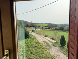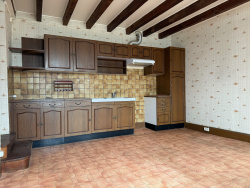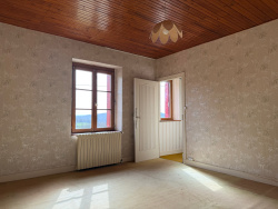 Auv 1214 : Maison avec magnifique vue et grand terrain. Cette maison avec garage, cave et grange se trouve sur un terrain de plus d'un hectare. Il y a également une petite parcelle séparée de 2000m2 à proximité. La maison dispose d'un chauffage central au fioul. Il n'y a actuellement ni cheminée ni foyer dans la maison. Les fenêtres sont en majorité en PVC imitation bois avec double vitrage, mais pas partout. Au rez-de-chaussée, une petite véranda donne accès à une cuisine équipée (18m2, 2m50 entre poutres). À gauche de la cuisine se trouve une chambre (15m2, 2m60 entre poutres) avec quelques traces d'humidité. La toiture complète a entre-temps été refaite après une tempête de grêle. Dans la continuité se trouve une salle de bains (6,2m2) avec toilettes, bidet, lavabo et baignoire. À droite de la cuisine, il y a un hall d'entrée central et, plus loin, le séjour (17,7m2, 2m60 entre poutres). Belle vue par les fenêtres. À l'arrière se trouve une seconde salle d'eau plus ancienne (6m2) avec douche, toilettes, bidet et lavabo. Petite cave. Au milieu de la maison se trouve l'escalier menant à l'étage. À l'étage, il y a deux chambres de 18 et 14m2, avec une hauteur de 2m60. Un autre escalier mène au grenier avec une hauteur au faîtage de 2m60 et une surface au sol de 41m2. Un second grenier plus petit n'est actuellement pas accessible. La toiture est entièrement isolée et il est certainement possible d'y créer des chambres supplémentaires. La façade avant de la maison bénéficie d'une vue très ouverte et dégagée. Le terrain se situe également côté devant et sur le côté de la maison. L'arrière de la maison correspond à la limite de propriété. Il y a une fosse toutes eaux de 3000 litres, mais elle n'est pas conforme. Le garage attenant a une surface de 21m2 et une hauteur de 2 mètres. On y trouve également la chaudière du chauffage central, ainsi qu'un point d'eau et un lavabo. La cuve à fioul est enterrée à l'extérieur. La cave accessible par le garage a une surface de 41m2. La grange a une surface de 51m2 et est accessible soit par le garage, soit par une grande porte donnant sur la rue. Le point le plus haut de la toiture de la grange est de 6,4 mètres. À l'arrière se trouve une maison voisine, mais du côté de la maison et du terrain où l'on vit principalement, la vue est surtout orientée vers la nature.