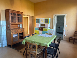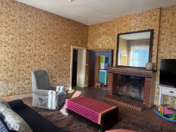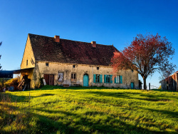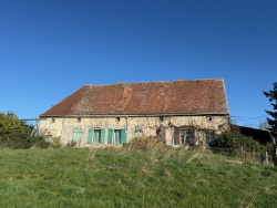 Auv 1217: Groot renovatieproject: 920m2 gebouwen op 8450m2, uitzicht Dit prachtige geheel moet gerenoveerd worden maar heeft een enorm potentieel. De dichtstbijzijnde gebouwen zijn een boerderij met charolais koeien, de huizen van het gehuchtje zelf liggen op 100m afstand. Er is in bijna alle richtingen een erg mooi uitzicht. De 2 gebouwen staan in een L-vorm waardoor er een mooie binnenplaats ontstaat aan de noordkant. Het gebouw dat vroeger een huis was heeft een grondoppervlakte van 380m2. De grote natuurstenen schuur heeft een binnenmaat van 6m50 bij 25m en is 8 meter hoog, met pannendak. Daarachter is er nog een grote stal achteraan in betonblokken en asbestplaten met een totale grondoppervlakte, en open hangars. Totaal bijgebouw van maar liefst 560m2. Alles is groot hier. De toegang van het perceel is via een eigen oprijlaan die kadastraal 6m breed is, maar momenteel smaller is door de begroeiing. Een hoek van het dak van het huis die slecht was, is vernieuwd, de rest van het dak is nog in oude kleine dakpannetjes en in middelmatige toestand. Binnenin zijn er nog authentieke elementen zoals balkenplafonds, haarden, mooie deur-en raamopeningen. De huidige indeling van het huis is als volgt: Hoogtes van 3m50 en 3m30 Inkomhal 32m2 Grote ruimte 25m2 met haard Smidse 20m2 met mooie stenen haard 2de inkomhal met mooie deuren aan beide kanten 26m2 Keuken 20m2 met betonvloer en linoleum, afwasbak Woonkamer met haard 26m2 Slaapkamer 14m2, badkamer afgescheiden met tussenwandje 5,3m2 Slaapkamer 12m2 Stookhok met CV op stookolie 16m2 Opslagruimte 16m2 Hoge zolders boven het geheel van het gebouw De mogelijkheden zijn uiteraard immens hier, het is een erg groot en goed gelegen project.