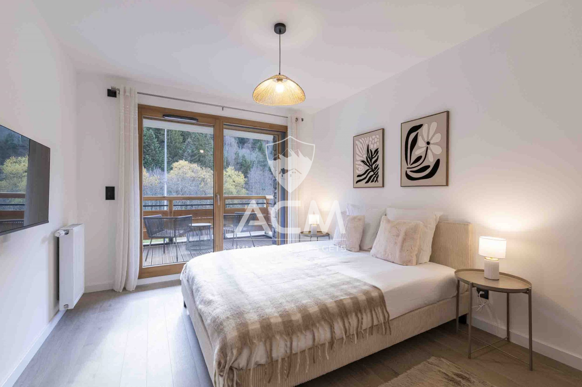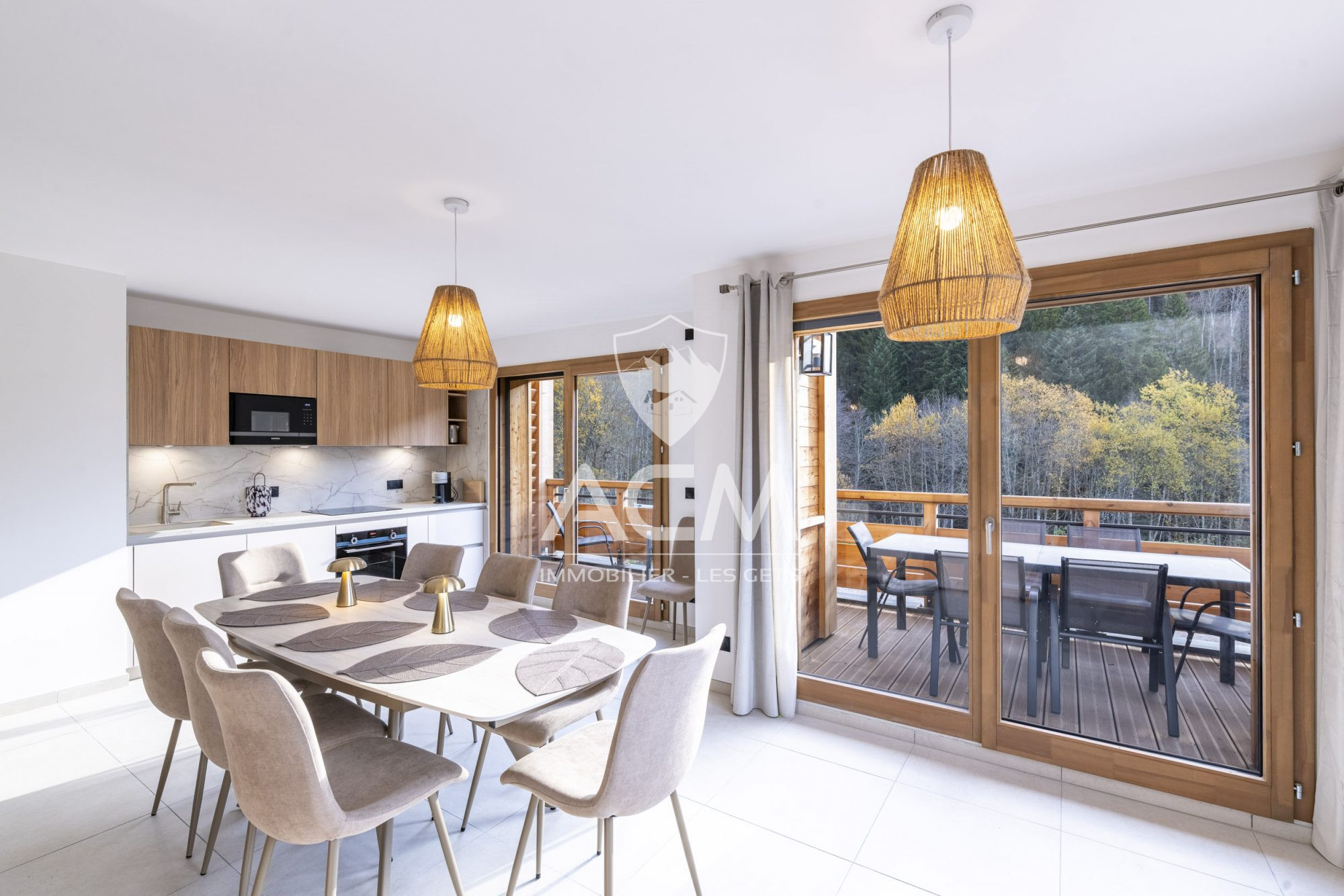 Caractéristiques du bien : Espace de vie spacieux : Un grand salon avec cuisine ouverte de 31 m², ouvert grâce à des larges baies vitrées sur une terrasse privative de 11 m², et un jardin privatif de 104,50 m² vous permet de profiter pleinement de la nature en toute intimité. Chambres confortables : Deux grandes chambres, dont une suite parentale de 27,22 m² avec dressing et salle de bain privative. La seconde chambre de 11 m² dispose également d'un dressing, garantissant un espace de rangement optimal. 2 coins montagnes pouvant accueillir jusqu'à 4 couchages supplémentaires. Une salle de bain supplémentaire et des WC séparés complètent l'aménagement. Points forts :Emplacement privilégié, à seulement 800 mètres du centre des Gets, dans un cadre calme et préservé. Accès facile aux pistes de ski et à la navette située à proximité. Résidence de haut standing, idéale pour une résidence secondaire ou un investissement locatif.