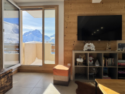 Quatre balcons rythment l'appartement et offrent chacun une vue ouverte sur la station et les montagnes.