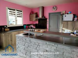 Axe SAINTE HERMINE/FONTENAY-LE-COMTE, déposez vos valises dans ce joli pavillon de plain-pied. Construit en 2010 il vous séduira par le style extérieur qu'il dégage et son agencement fonctionnel. Il est composé : d'une entrée, une cuisine aménagée et équipée semi-ouverte sur une grande pièce de vie lumineuse avec poêle à bois. Un dégagement dessert 4 chambres (dont 3 avec placard), une salle de bains (avec douche et baignoire), un wc. Arrière cuisine, garage et cave attenants.