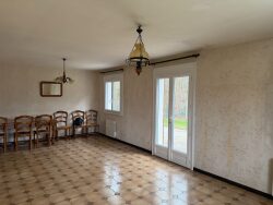 Réf. 8917 Axe Pacy / Évreux. Maison de plain-pied. Construction traditionnelle comprenant : entrée desservant le séjour de 28 m² env., cuisine, 2 chambres (10 m² et 12,5 m² env.), salle de douches, WC ind. Sous-sol total comprenant : buanderie, cellier, pièce de stockage / bureau, garage. Menuiseries en PVC double vitrage, avec volets roulants. Chauffage électrique. Terrain clos de 1 126 m².