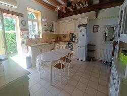 Entre provins et coulommiers. Proche axe nationale 4. Maison ancienne en pierre de 5 chambres très bien entretenue. La maison se compose d'une entrée, grande cuisine équipée d'environ 23m² avec pierre et poutre, arrière cuisine, séjour d'environ 35 m² avec cheminée insert , bureau, salle d'eau wc. A l'étage un palier desservant 5 chambres dont une cathédrale, un dressing, une salle de bains avec wc. Jardin clos, terrasse, cave voutée et grenier. Garage avec porte motorisée. Pompe à chaleur. Accès sur 2 rue. Au calme.