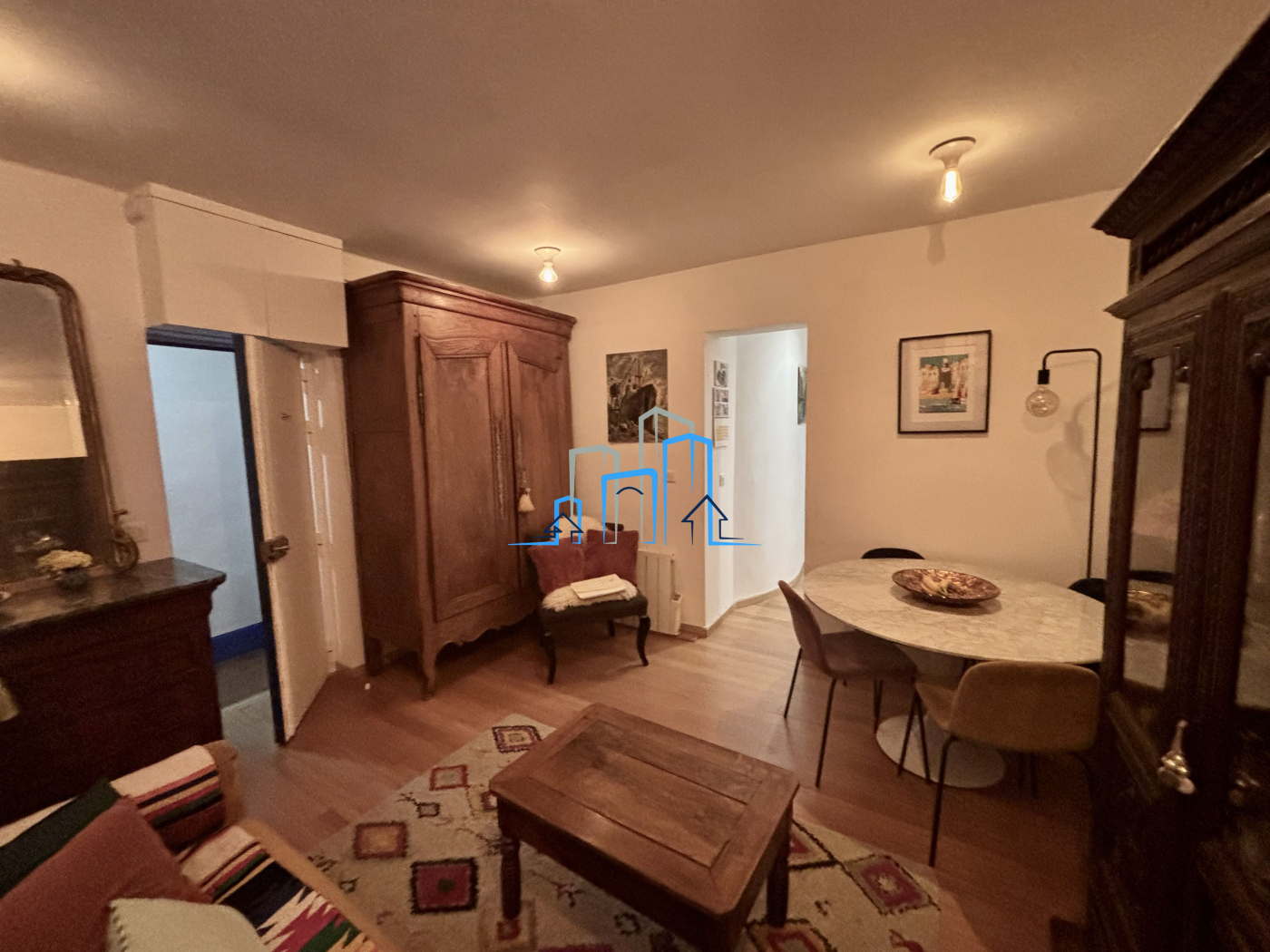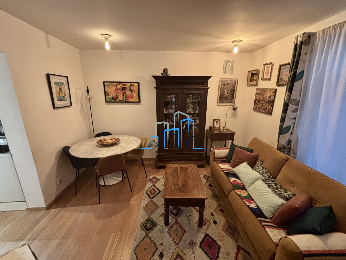 Paris 18ème dans un immeuble ancien en bon état de la rue Ernestine, au 1er étage exposé sud-ouest, ce deux pièces de 43.03m² est composé d'une entrée, une salle d'eau avec WC, une grande cuisine dinatoire, une très belle pièce de vie en angle et très ensoleillé et une chambre. Le bien est en très bon état, avec double vitrage, tout électrique, un beau parquet. L'immeuble est sécurisé par un code et un interphone. Les charges de copropriété s'élèvent à 113 euros par mois et la taxe foncière est d'environ 920 euros. Disponible 6 mois après la signature du compromis.