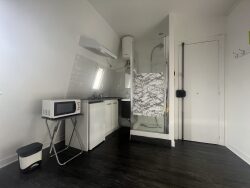 BAIL CODE CIVIL/RESIDENCE SECONDAIRE Idéal pour un pied à terre, rue du Faubourg Saint Antoine, Studio parfaitement agencé. Le bien dispose d'une pièce principale avec un lit armoire, un placard, une kitchenette et une cabine de douche. Le WC est sur le palier (directement en sortant partagé avec un autre occupant). Immeuble très bien entretenu avec ascenseur. 6ème et dernier étage avec vue dégagée sur les toits de Paris. A proximité de Nation.
