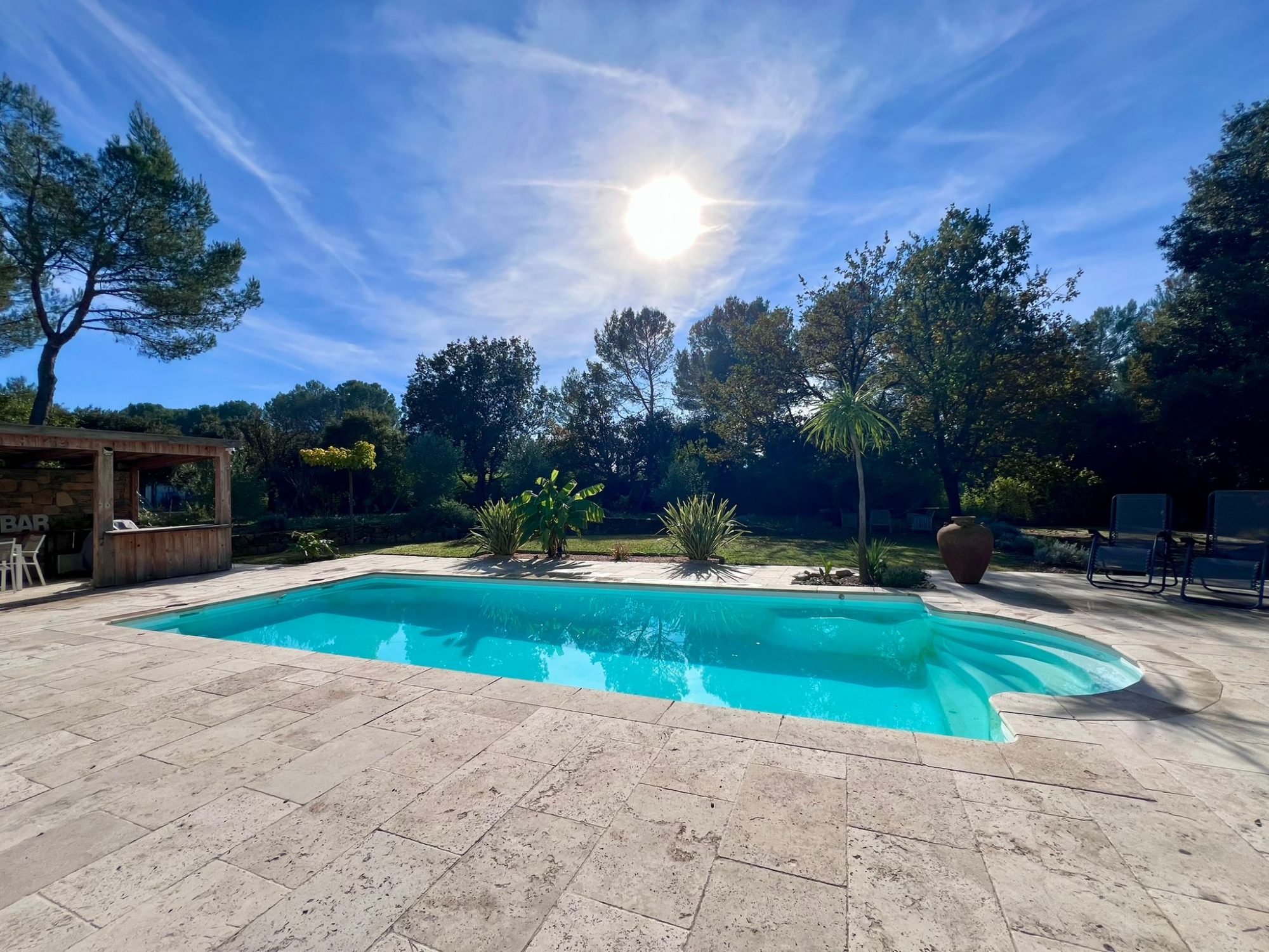 Maison de caractère offrant de beaux volumes et de vastes pièces de vie baignées de lumière. Idéale pour une grande maison de famille ou pour recevoir, elle séduit par son authenticité et son atmosphère chaleureuse. La partie principale, de plain-pied à l'étage, se compose d'une vaste entrée, d'une suite parentale, de deux chambres, d'un WC indépendant, d'une salle d'eau ainsi que d'une mezzanine surplombant l'espace de vie. Au niveau inférieur, un grand dégagement dessert une suite parentale, une salle d'eau, un WC indépendant, une cuisine avec cellier et un vaste séjour avec cheminée ouvrant sur une véranda donnant directement sur la piscine. Les extérieurs proposent de belles prestations avec une double terrasse et une cuisine d'été fermée, idéales pour profiter pleinement des beaux jours. En annexe, un appartement de type 4 en rez-de-jardin offre un espace indépendant composé d'un dégagement, de trois chambres, d'une salle d'eau, d'un WC, d'un séjour et d'une cuisine ouvrant sur une terrasse et le jardin avec cabanon. La propriété dispose d'un jardin clos et de nombreuses possibilités de stationnement. Des travaux de rafraîchissement sont à prévoir, laissant entrevoir un très beau potentiel d'aménagement. Situation privilégiée au calme absolu, sans vis-à-vis, avec une vue dégagée sur la pinède, offrant un cadre de vie paisible et verdoyant.