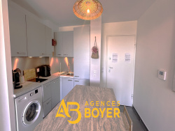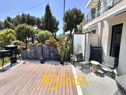 BANDOL Au sein d'une résidence intimiste de standing, édifiée en 2019, découvrez ce superbe appartement de type T2 d'environ 39 m2, bénéficiant d'un environnement privilégié. Un des atouts de ce bien réside dans sa vaste terrasse de 30 m2, exposée plein Sud, offrant une vue panoramique sur la mer et un véritable espace de vie extérieur. L'appartement vendu en l'état entièrement aménagée et meublé se compose d'un séjour lumineux avec cuisine ouverte, d'une chambre avec placard intégré, d'une salle d'eau contemporaine équipée d'une douche à l'italienne, ainsi que de WC indépendants. L'accès est facilité par un ascenseur de plain-pied. Un garage fermé de 17 m2 en sous-sol complète ce bien, assurant un stationnement sécurisé. La résidence au concept familliale, parfaitement entretenue, propose un cadre de vie agréable et verdoyant, avec notamment un terrain de pétanque à disposition des résidents.