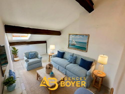 EXCLUSIVITE BANDOL - T3 Vue mer imprenable, dernier étage sur le port de Bandol Découvrez cet appartement de type 3 au charme unique, niché au 4e et dernier étage d'un immeuble en première ligne sur la promenade du port de Bandol (sans ascenseur). Dès l'entrée, vous serez immédiatement captivé par une vue panoramique exceptionnelle à 180o sur la mer et les bateaux, véritable tableau vivant au fil des saisons. L'espace de vie climatisé d'environ 30 m2 bénéficie d'une impressionnante hauteur sous plafond (3,90 m), créant une atmosphère à la fois élégante, lumineuse et aérée. La cuisine ouverte, astucieusement intégrée, offre une belle harmonie entre esthétisme et fonctionnalité, idéale pour recevoir. Le coin nuit se compose de deux chambres mansardées avec rangements, d'une salle d'eau et de WC séparés. La surface totale au sol atteint 70.50 m2 (pour 50,60 m2 loi Carrez), optimisée pour un confort quotidien. Un bien rare, empreint de caractère, parfait pour une résidence principale pleine de charme, un pied-à-terre face à la mer ou un investissement locatif premium.