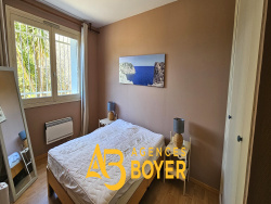 Dans un secteur recherché, au calme tout en restant proche du centre-ville et des plages, agréable appartement de type 3 en bon état général.Il se compose de pièces de vie lumineuses ouvertes sur l'extérieur, offrant une belle vue dégagée et de charmants aperçus mer. L'appartement bénéficie d'un bel espace extérieur rare : un jardin privatif d'environ 150 m2, une terrasse couverte permettant de profiter en toute saison ainsi qu'une loggia. De quoi savourer confort et convivialité au quotidien.La résidence est bien entretenue et permet un stationnement très aisé pour les résidents. En complément, il est possible d'acquérir un garage spacieux d'environ 25 m2 situé dans la copropriété.Cet appartement réunit calme, fonctionnalité et qualité de vie, avec la proximité immédiate de toutes les commodités et des plages. Une opportunité à ne pas manquer.