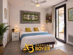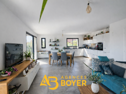 Dans un environnement résidentiel recherché et au calme absolu, découvrez cette maison contemporaine de 2020, développant environ 100 m2, pensée pour offrir confort, luminosité et qualité de vie sur une parcelle privative de 455m2. Le rez-de-chaussée accueille trois chambres, dont une suite avec salle d'eau, ainsi qu'une salle de bain avec WC. À l'étage, un séjour de plus de 40m2 baigné de lumière avec cuisine, qui s'ouvre sur une terrasse de 13 m2 équipée d'une pergola bioclimatique, offrant une superbe vue mer et sur les îles. Possibilité d'y créer une chambre supplémentaire selon vos besoins. Le jardin plat et paysager, agrémenté d'arbres fruitiers et d'un espace potager, invite à la détente. Une piscine (3x5 m) peut aisément y être envisagée. Prestations de qualité : panneaux photovoltaïques, garage de 15 m2, construction récente aux normes actuelles. Maison parfaitement intégrée dans un ensemble résidentiel harmonieux. Un bien rare sur le secteur, alliant modernité, élégance et douceur de vivre à BANDOL. Les informations sur les risques auxquels ce bien est exposé sont disponibles sur le site Géorisques : www.georisques.gouv.fr