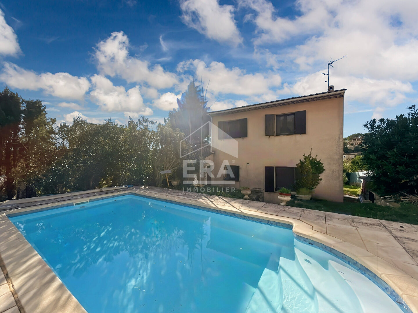 BAS DE VILLA CALME ABSOLU JOLIE VUE Au calme absolu avec vue imprenable sur les collines de Grasse, on trouve cette maison jumelée par derrière complètement refaite a neuf avec deux chambres, salles de douche, séjour et cuisine américaine. Tout donne sur une belle terrasse, beaucoup de luminosité. Beau jardin plat sur deux niveaux et emplacements de voitures. Piscinable. Charme provencale et vue très dégagée au calme absolu et ambiance campagne. A voir rapidement.