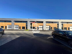 AMENAGEMENTS EXTERIEURS : Places de parkings traitées en Evergreen. Clôtures en panneaux rigides 1,80 m et portail automatique. 1 fourreau par cellule pour places véhicule électrique. STRUCTURE : Charpente métallique, dallage sur terre-plein et mur séparatif en maçonneries entre chaque cellule. La hauteur libre dans chaque cellule est de 6.00 m. Dallage en béton armé finition surfacée « quartz », surcharge d'exploitation 1.5 tonnes. MEZZANINE : 250 kg/m2, non compris escalier et garde-corps. FAÇADES : Bardage métallique double peau, isolation 90 mm MENUISERIES EXTERIEURES : aluminium laqué à rupture de pont thermique TOITURE : toiture terrasse non accessible type étanchéité multicouche auto protégée sur bac acier avec isolation 90 mm. Descentes EP intérieures en PVC. ELECTRICITE POUR CHAQUE CELLULE : - un système de comptage indépendant. Mise en place d'un tarif bleu (36 kVA). - un TGBT - prises de courant 10/16 A+T, 5 unités par cellule. - Éclairage intérieur : Luminaires industrielles étanches (éclairement de 200 lux.) - Éclairage extérieur : Projecteurs fixés sur les acrotères des bâtiments. - Éclairage de sécurité : Blocs autonomes d'évacuation. - Sécurité incendie : alarme type 4 pour chaque cellule.