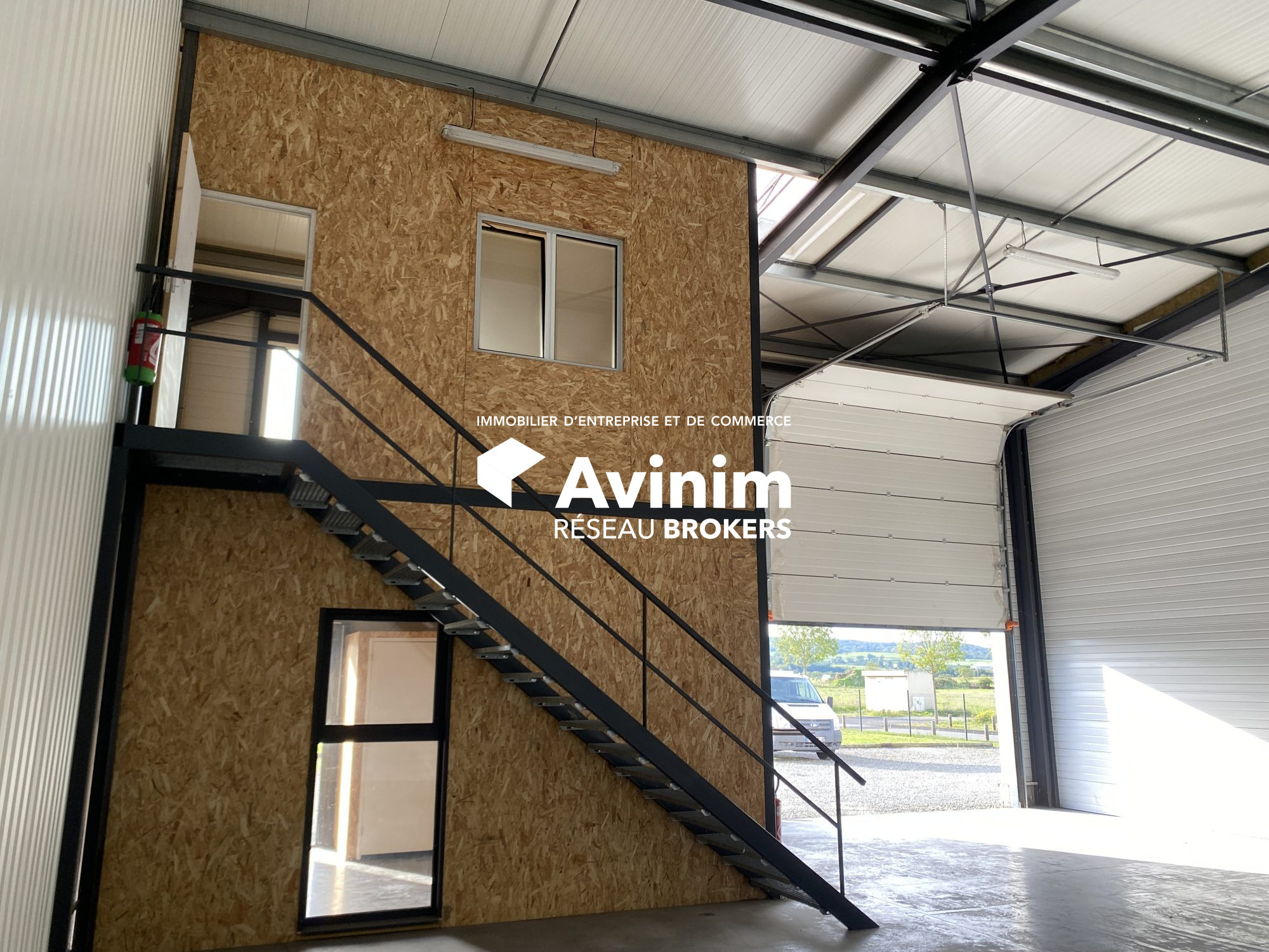 Le bâtiment, de 2012, est découpé en 2 zones qui communiquent : - une zone de bureaux de 170 m² répartis sur 2 niveaux avec sanitaires au rdc et à l'étage - une partie dédiée à l'activité et au stockage : 225 m² d'entrepôt avec une hauteur sous plafond allant jusqu'à 9ml, deux mezzanines de 100 et 45 m², un espace sanitaires, douche et cuisine dédié au personnel de 35 m².