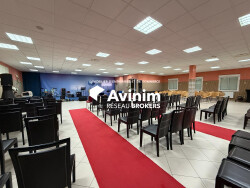 Bâtiment indépendant Terrain clos de 2 158 m² Surface bâtie d'environ 400 m² Grande salle de réception / activité Cuisine équipée avec douche + WC 2 WC femmes / 2 WC hommes / 1 WC PMR 6 portes de secours Climatisation réversible chaud / froid Radiateurs électriques Rénovation extérieure récente Toiture et étanchéité refaites