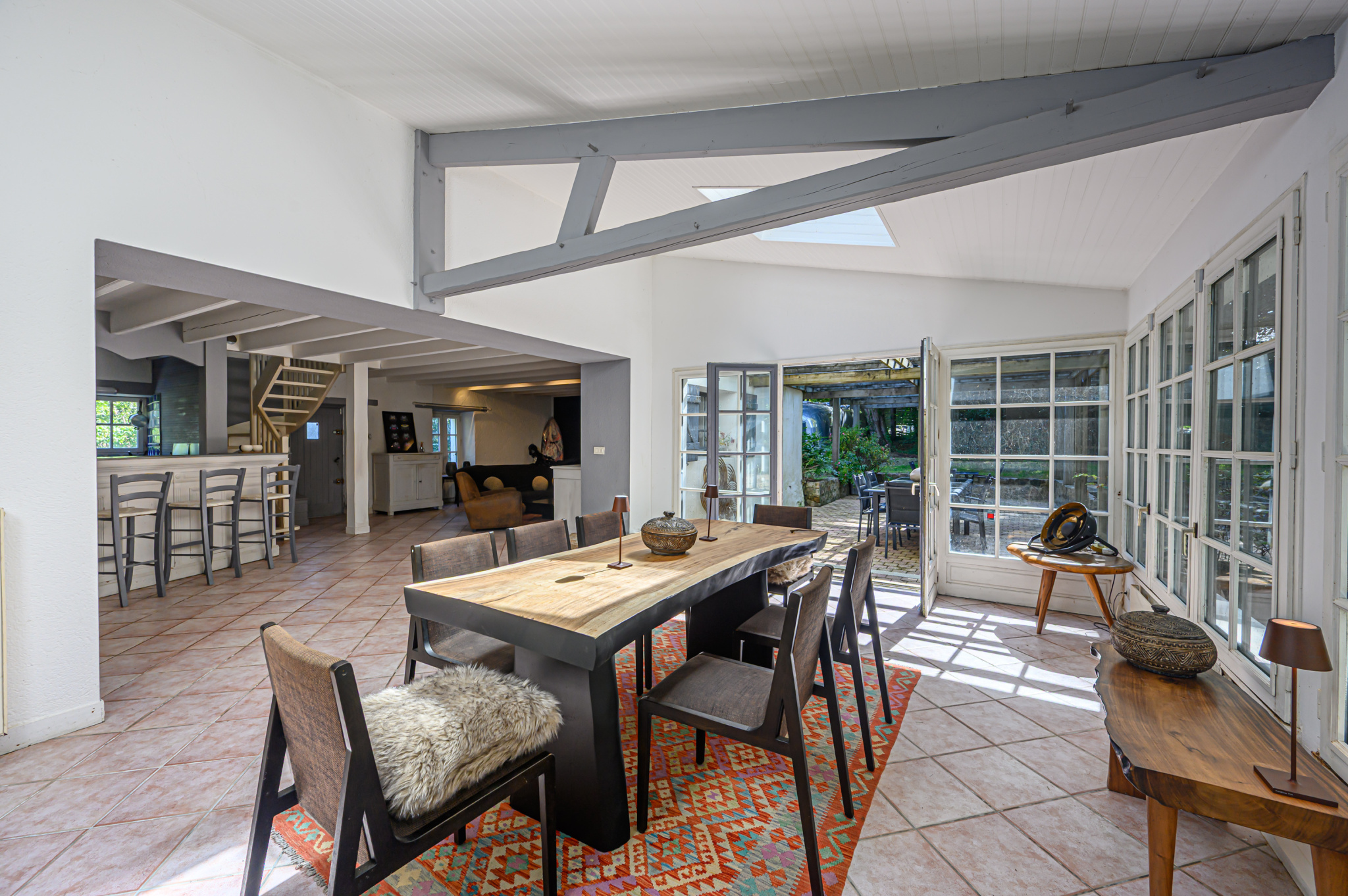 Maison ancienne de 200 m2 environ à renover totalement avec, au rdc,un couloir d'entrée, une pièce de vie avec cuisine et placard, une buanderie/chaufferie et douche, une chambre, une salle à manger et, au 1er, palier, 2 chambres, grenier, palier, salle d'eau et, au 2ème, palier, cuisine, 2 chambres, W-C extérieurs, dépendances, cour.