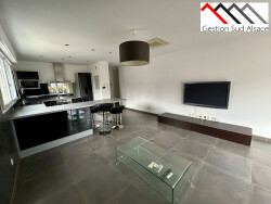 Situé au deuxième étage d'un immeuble de deux étages, cet appartement bénéficie d'une vue dégagée et apaisante. Les grandes ouvertures en PVC à double vitrage laissent entrer la lumière naturelle, créant une atmosphère chaleureuse et accueillante. La cuisine américaine, entièrement aménagée et équipée, est un véritable atout pour les amateurs de cuisine. Elle s'ouvre sur un salon spacieux, parfait pour recevoir amis et famille.