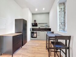 PRESTATIONS DU F2 MEUBLÉ RUE FESCH : Carrelage Parquet flottant Peinture, faïence Menuiserie PVC double vitrage Chauffe-eau électrique plat Clim réversible séjour Cuisine équipée Douche grand receveur. COMPOSITION DU F2 MEUBLÉ RUE FESCH :
