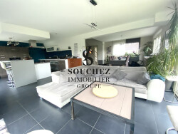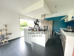 Avec une surface habitable généreuse de 159 m², cette maison s'étend sur un seul niveau en Semi plain-pied , idéal pour une accessibilité optimale. Imaginez-vous déambuler dans un séjour de 56 m², baigné de lumière grâce à une exposition sud-ouest qui illumine chaque recoin tout au long de la journée. Les ouvertures en aluminium garantissent une isolation thermique et phonique parfaite, vous offrant un intérieur paisible et protégé par les volets motorisés .