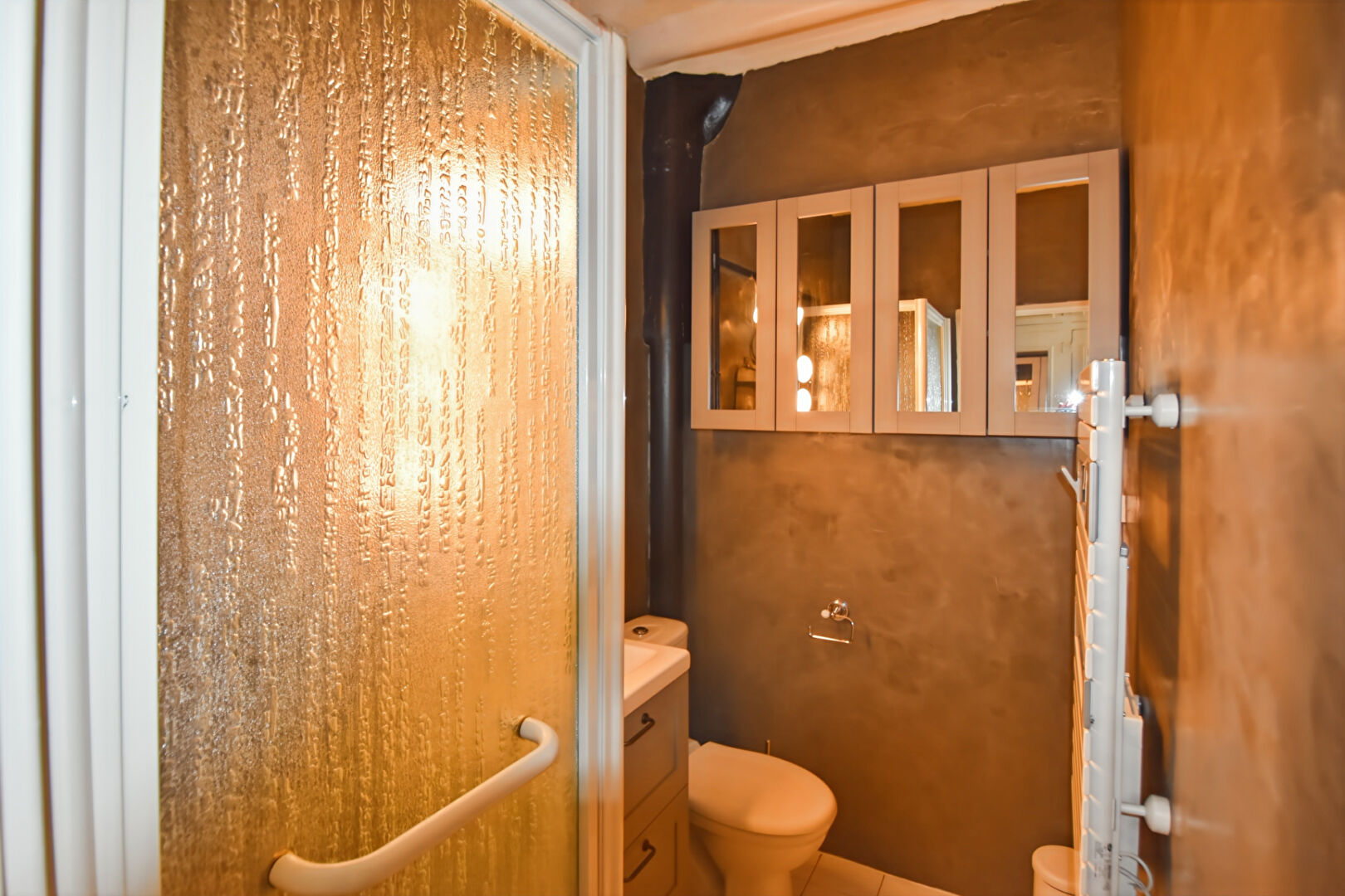 Il se compose d'une entrée, d'un espace séjour avec rangements, d'une cuisine semi-ouverte entièrement équipée ainsi que d'une salle d'eau avec douche et WC. Rénové en 2022, l'appartement est en parfait état et dispose de prestations soignées : fenêtres double vitrage, volets roulants électriques, beau parquet?