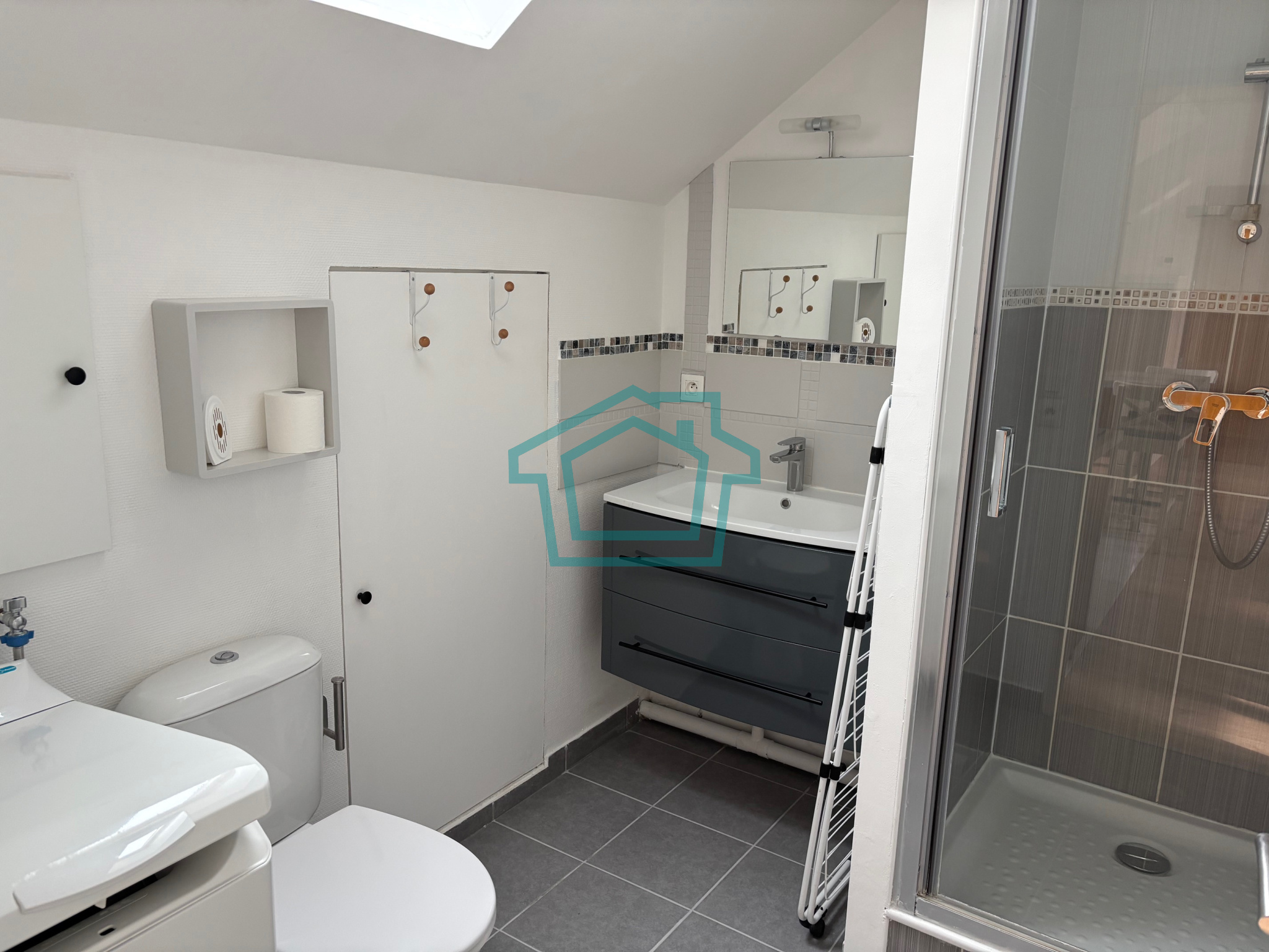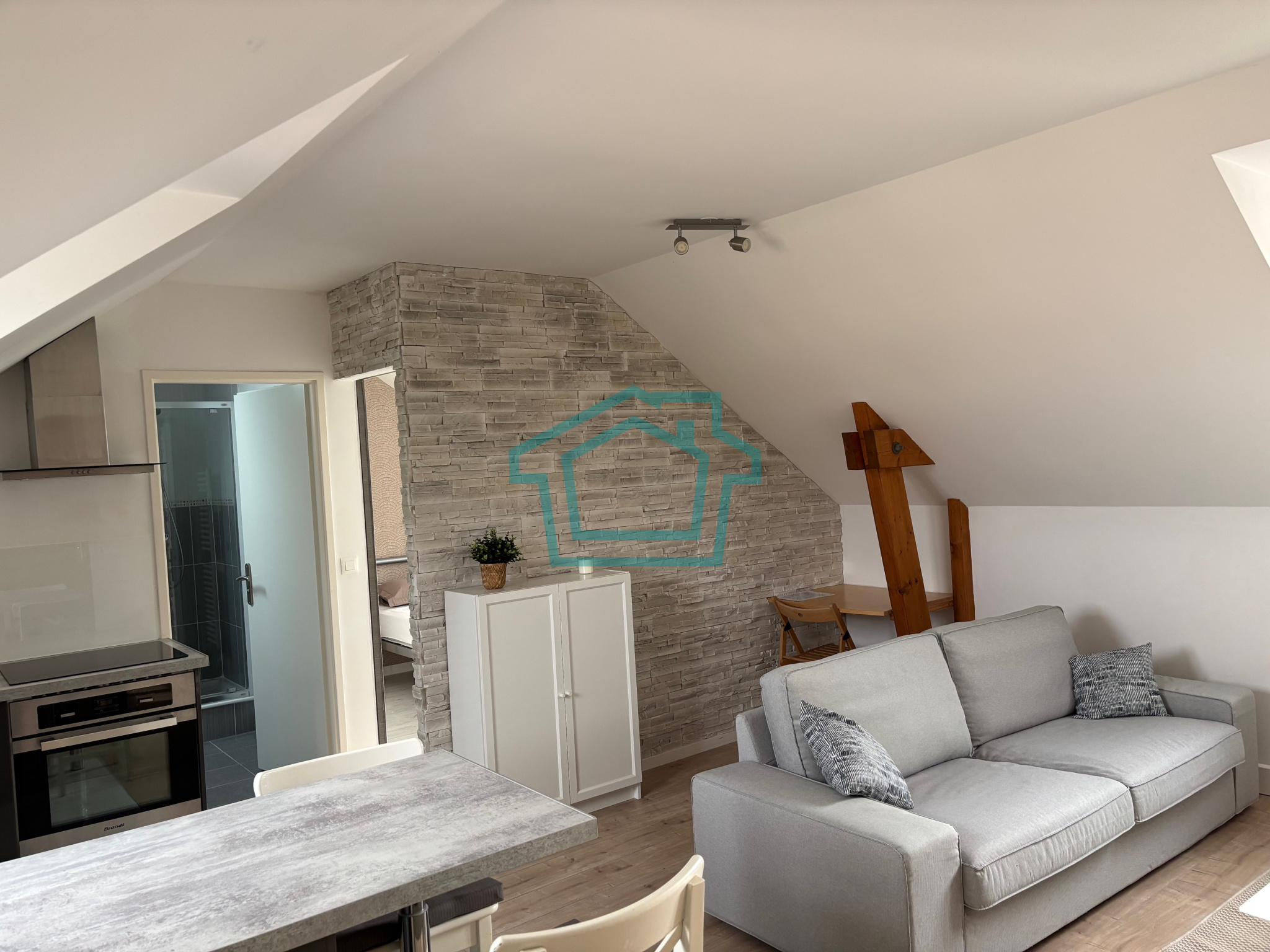 Au 2ème étage avec ascenseur, ce logement se compose d'une entrée avec placard, une pièce principale lumineuse avec son coin cuisine et une grande salle d'eau avec WC.